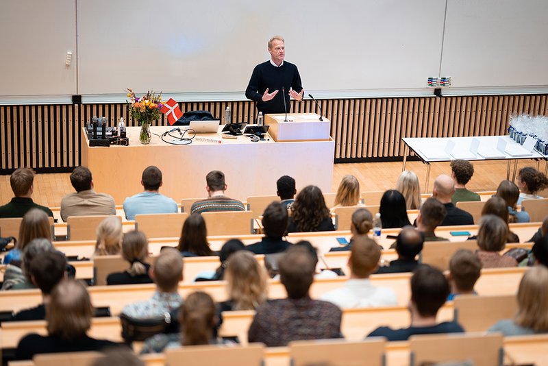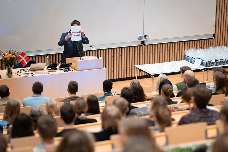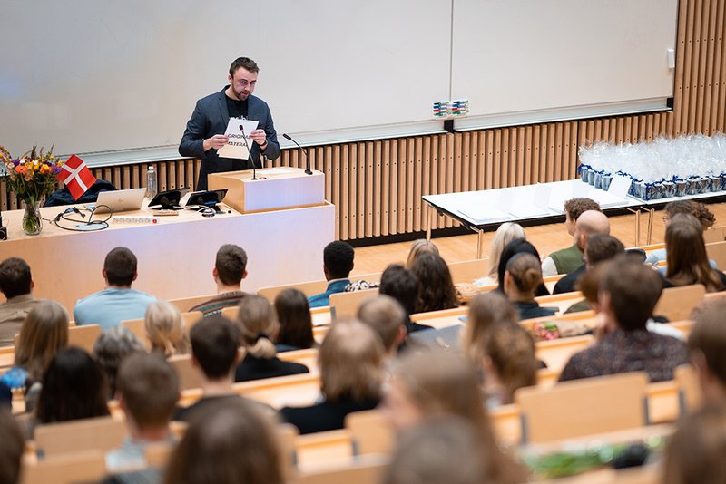 ”I er kommet gennem jeres studietid med store bump på vejen især på grund af Corona. Vi har set med egne øjne, hvordan I har knoklet og hjulpet hinanden. Fællesskabet har vist sin store værdi. Nu er I klar til at læse videre eller til at træde ud på arbejdsmarkedet, men verden er forandret. Den er ramt af en alvor, I ikke kendte til på samme måde, da I startede på universitetet. Vi står overfor nogle enorme udfordringer omkring klima, grøn omstilling, energiforsyning, sundhed og cybersikkerhed, og mange af jer vil komme til at bruge jeres karriere på at skabe en bedre fremtid for os alle. Samfundet har brug for jer. Måske mere end nogensinde. Og I tager derfor fra dimissionen her med både meget store muligheder og et meget stort ansvar. Jeg ønsker jer held og lykke.”